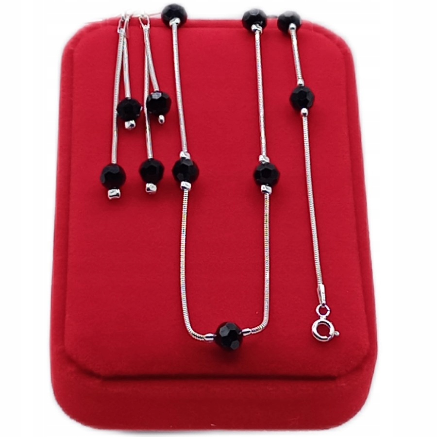 Srebrny Komplet 3w1 925 CZARNE KULKI splot żmijka APHORA