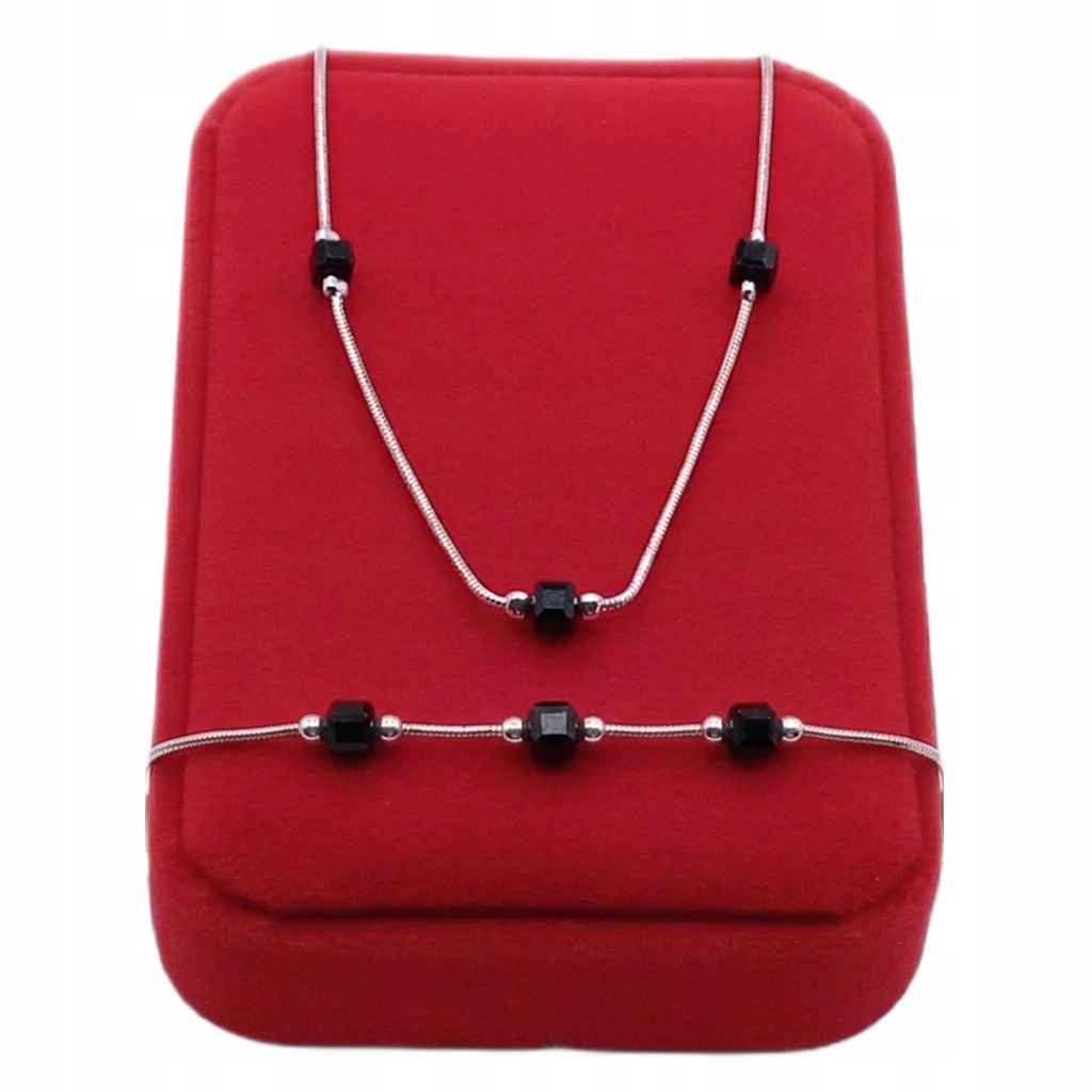 Srebrny KOMPLET 925 splot Kostka czarne multi kryształki APHORA
