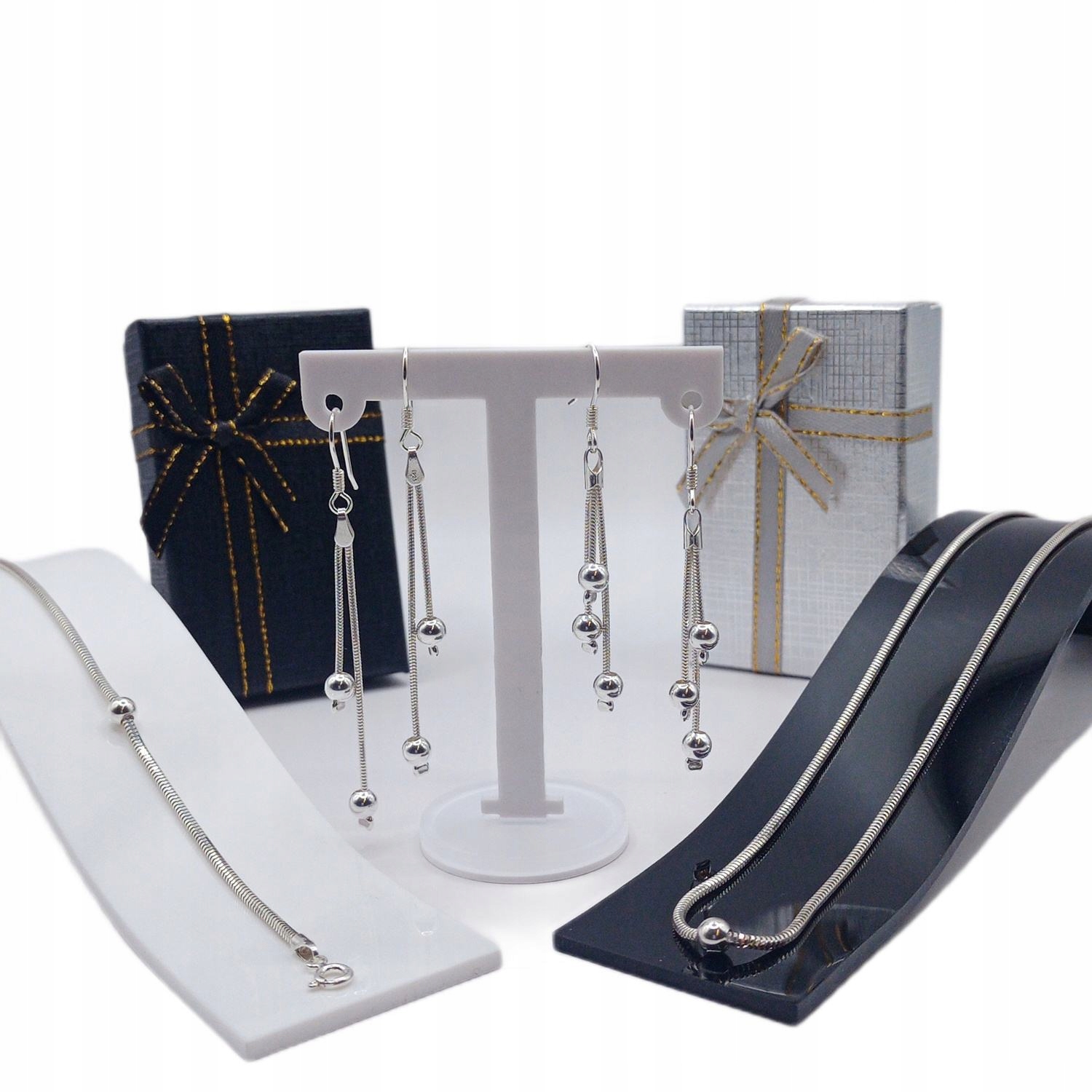 Masz do dyspozycji łańcuszek, bransoletkę oraz drugi wariant kolczyków czyli potrójne. Wszystkie dostępne produkty dostępne na naszych innych aukcjach.