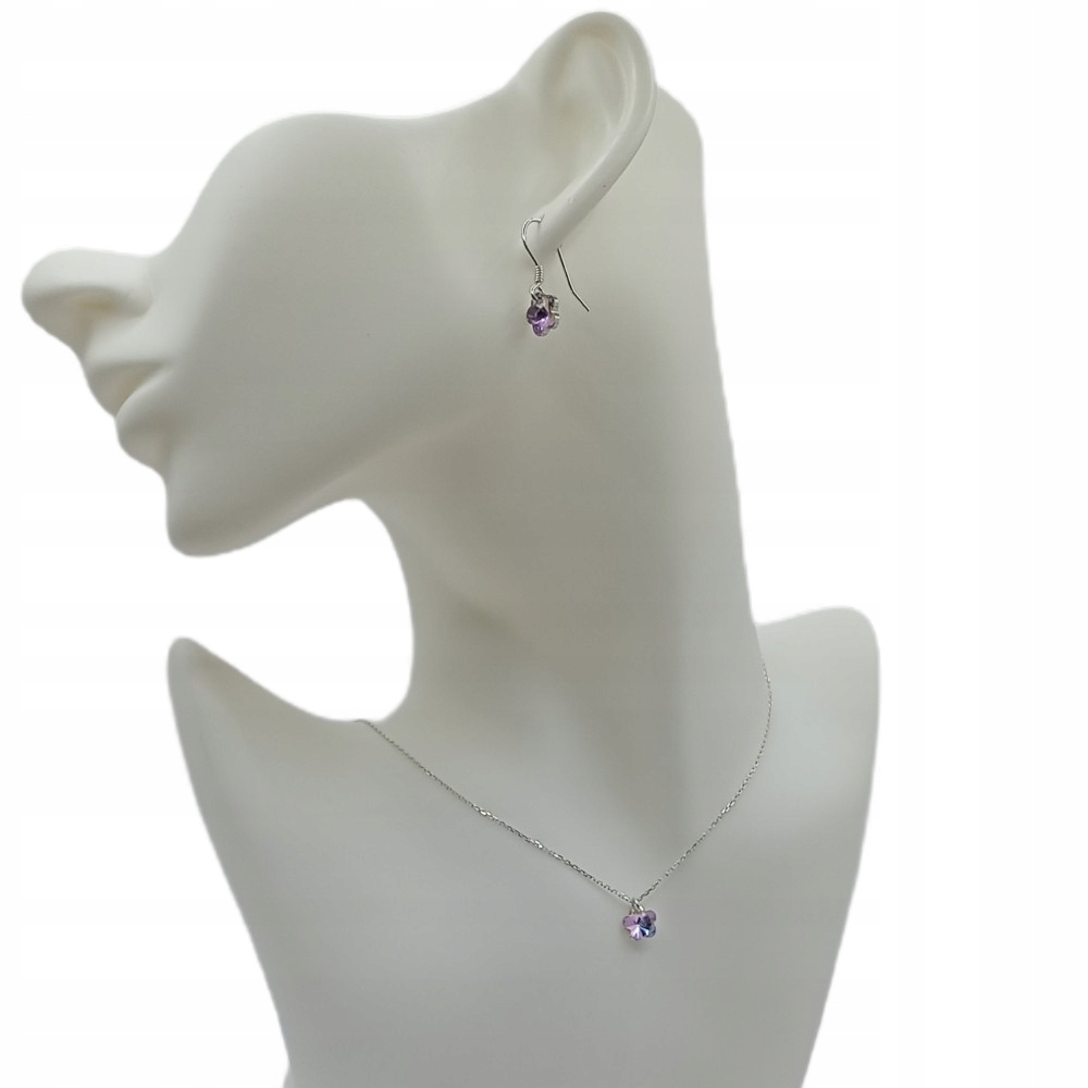 Choć naszyjnik sam w sobie zachwyca, dopiero w połączeniu z pasującymi kolczykami tworzy komplet, który robi wrażenie. Szklane kwiatuszki w identycznym, opalizującym odcieniu fioletu i różu subtelnie odbijają światło przy każdym ruchu – razem tworzą spójną, elegancką całość.