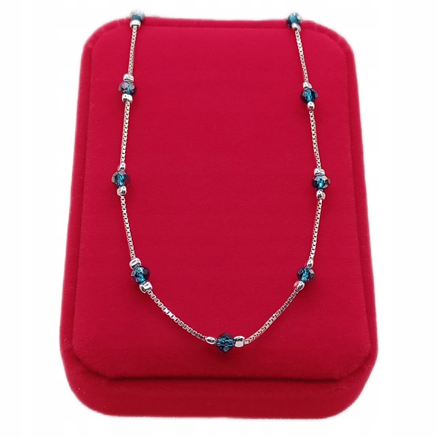 Łańcuszek srebrny 925 z niebieskimi szklanymi kulkami APHORA – 40+5 cm / 0,9mm