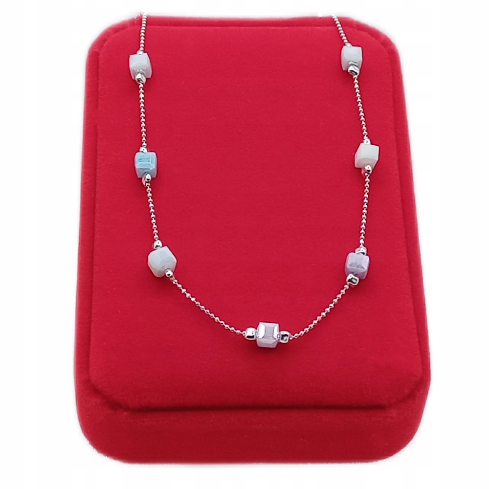 Łańcuszek srebrny 925 APHORA – z pastelowymi kamieniami / 45 cm + 5 cm