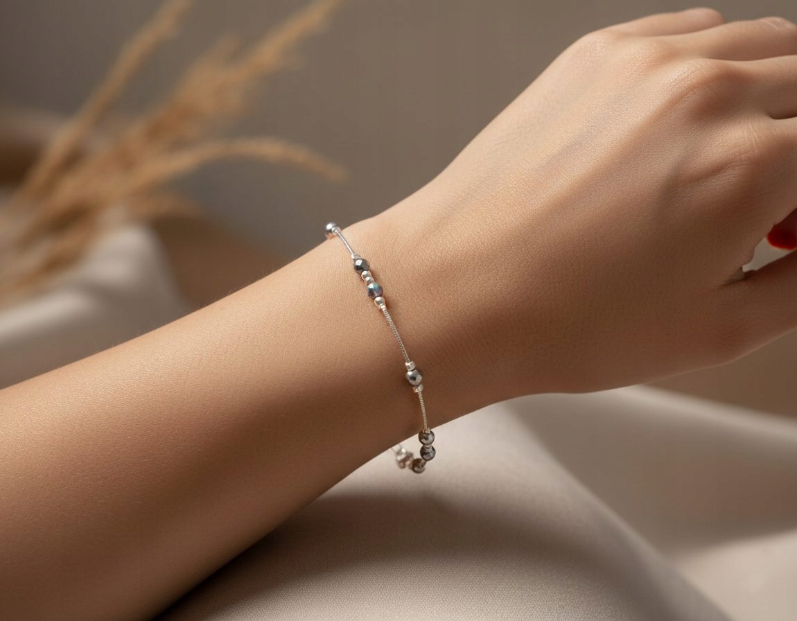 Dodaj odrobinę subtelnego blasku do swojej stylizacji dzięki tej wyjątkowej, ręcznie wykończonej bransoletce.