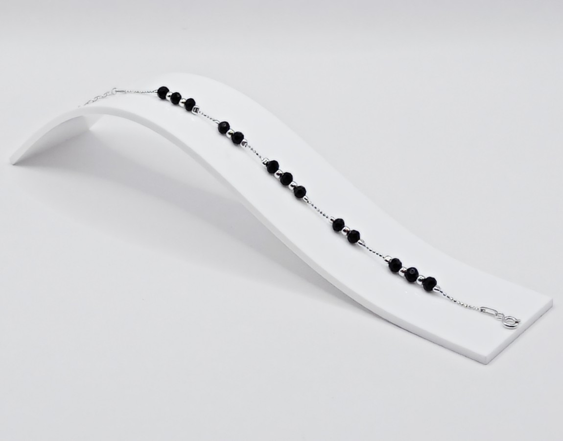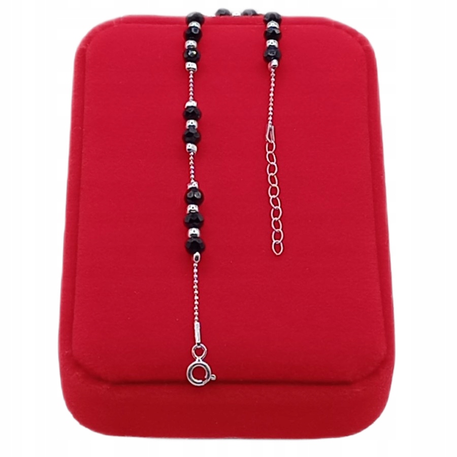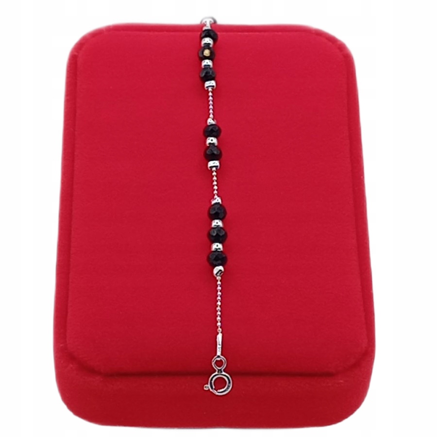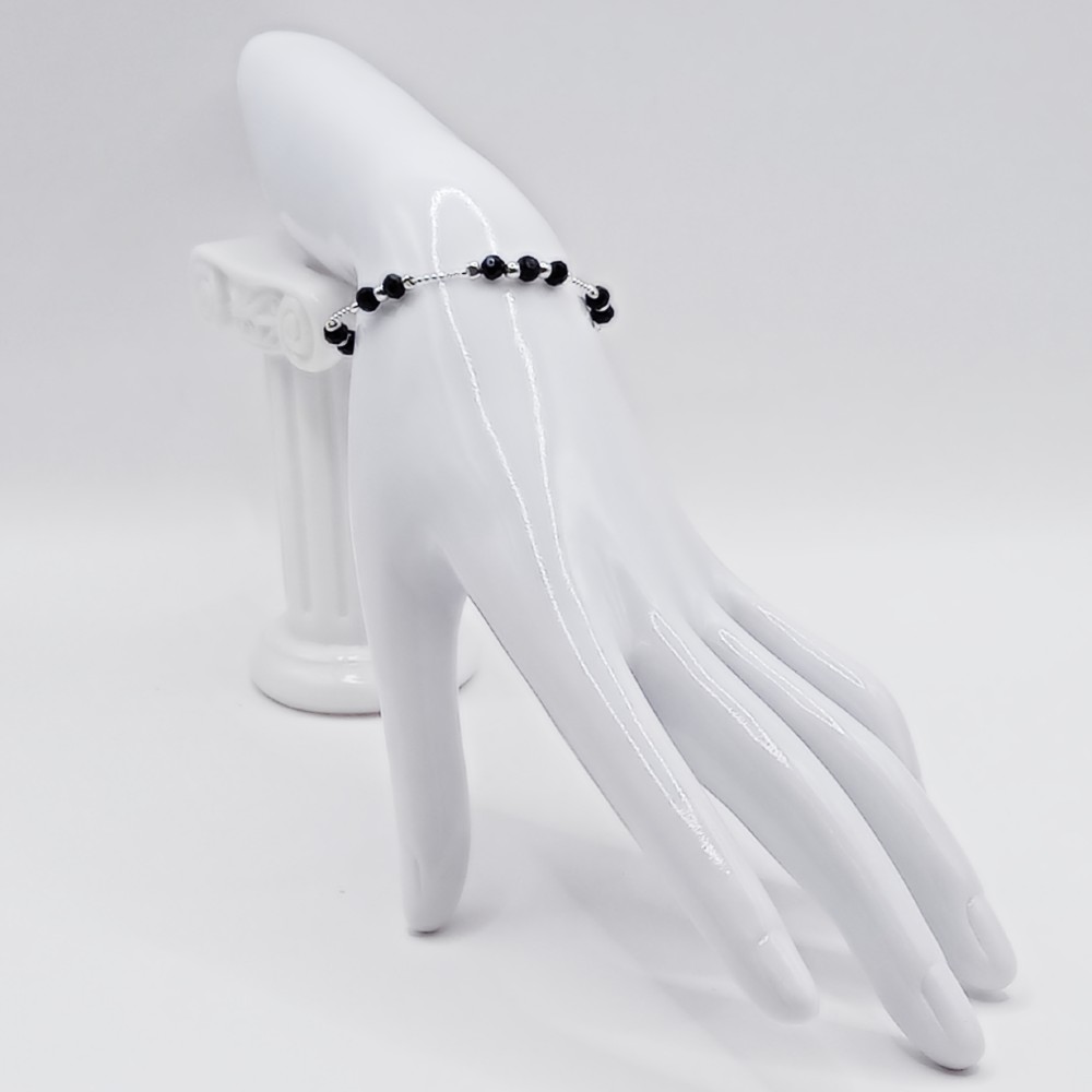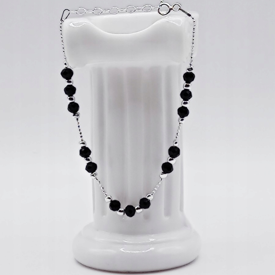 Ta srebrna bransoletka z czarnymi fasetowanymi kuleczkami to idealny wybór – ponadczasowa, elegancka i pełna uroku.