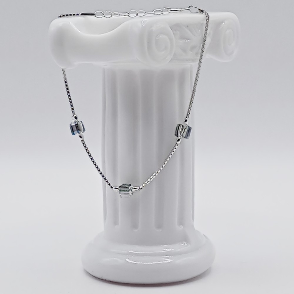 Bransoletka – wykazują niezwykle staranne wykończenie. Powierzchnia splotu jest o strukturze kostki, tak samo jak detale szklane, które w wyjątkowy sposób go upiększają.