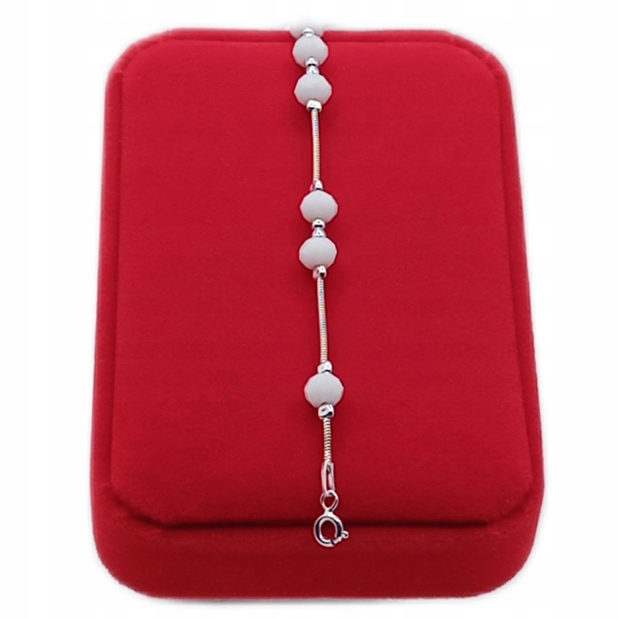 Połączenie lśniącego srebra próby 925 z fasetowanymi białymi koralikami tworzy harmonijną i ponadczasową całość, która doskonale podkreśli nadgarstek Panny Młodej lub każdej kobiety ceniącej sobie klasyczną, a zarazem nowoczesną elegancję.