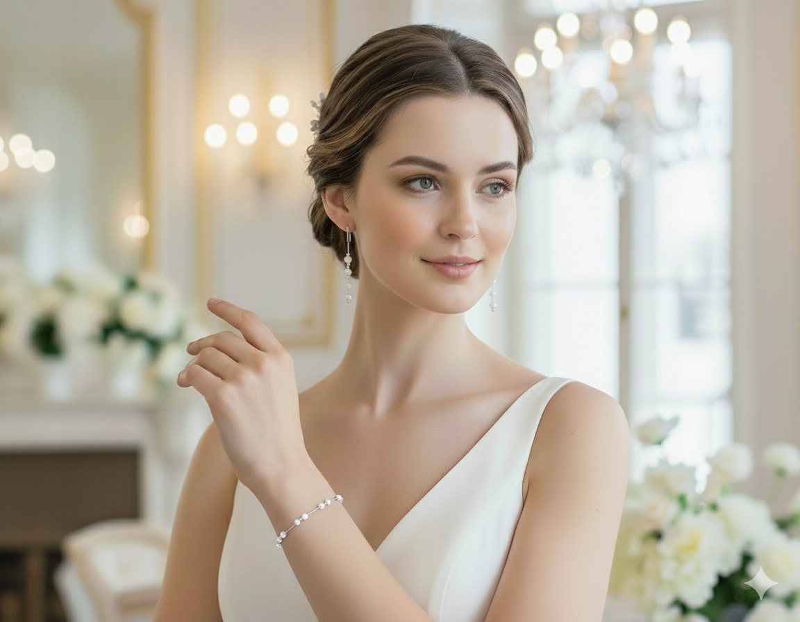 Elegancka i subtelna bransoletka, idealna na wyjątkowe okazje, takie jak ślub, wesele czy bankiet.