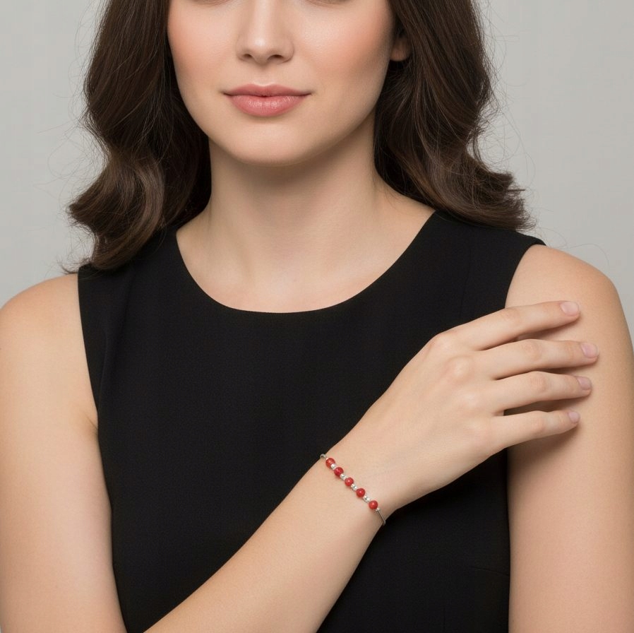 Odkryj bransoletkę, która łączy w sobie klasyczną elegancję srebra z ognistym temperamentem fasetowanego szkła.