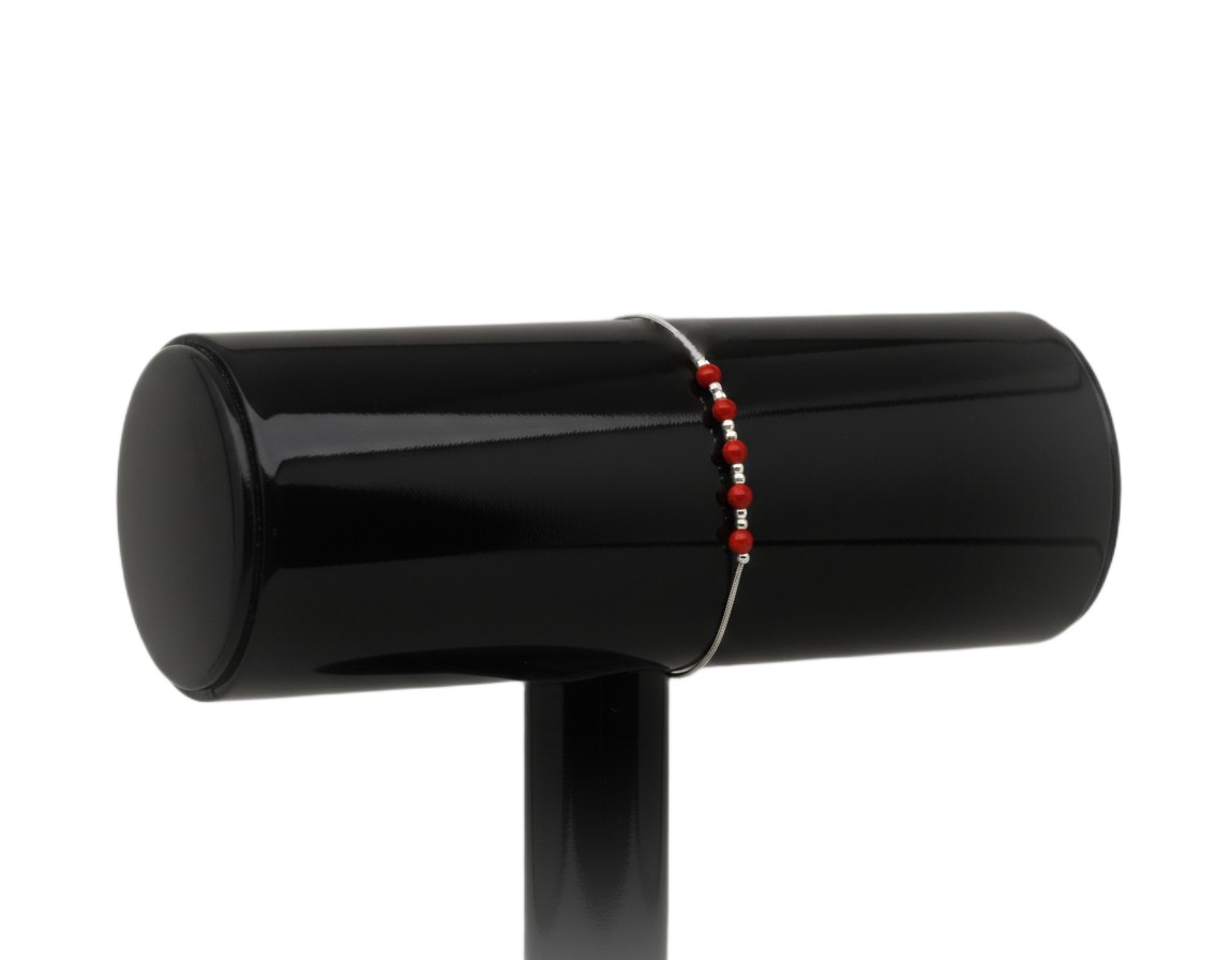 Czerwone kuleczki lśnią przy każdym ruchu dłoni, a dzięki precyzyjnie zaciskanym stoperom, kompozycja pozostaje idealnie symetryczna przez cały dzień.