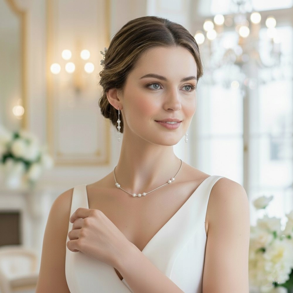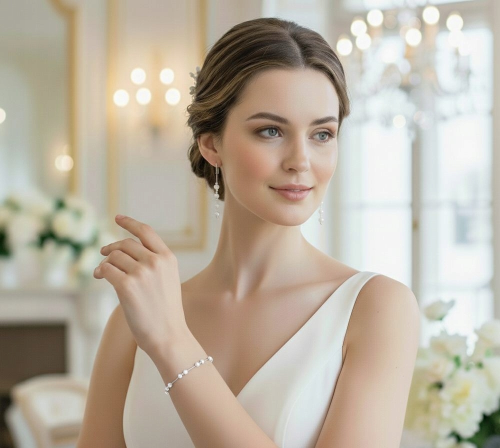 Posiadanie całego kompletu (naszyjnik, bransoletka i kolczyki) gwarantuje idealną spójność i harmonię w stylizacji. Unika się problemu dopasowywania poszczególnych elementów, ponieważ splot łańcuszka typu Żmijka, fasetowane białe koraliki 6 mm oraz próba srebra 925 są identyczne w każdym detalu. Komplet jest idealny na najważniejsze uroczystości, takie jak ślub czy bankiety, zapewniając dopracowany i luksusowy wizerunek.
