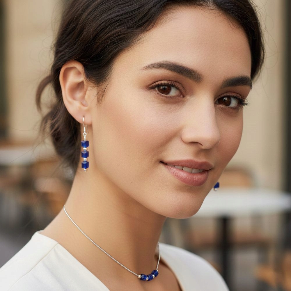Wyjątkowy komplet biżuterii, który łączy w sobie minimalistyczną elegancję srebra z hipnotyzującym blaskiem fioletowych kryształków.