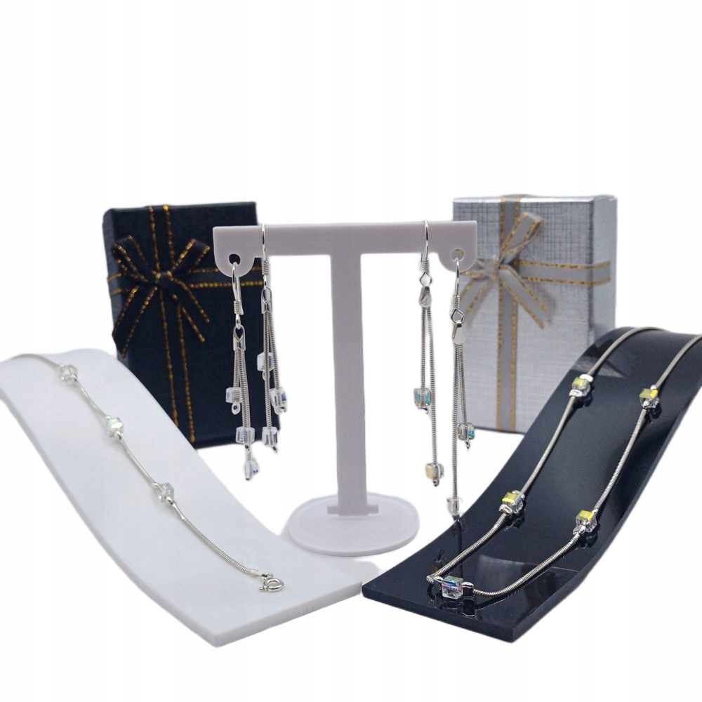 Przezroczyste kostki delikatnie mienią się w świetle, tworząc efekt lodowej tafli — idealny na zimowe stylizacje, wieczorne wyjścia lub jako wyjątkowy prezent. Komplet Crystal Ice to połączenie nowoczesnego designu z ponadczasową klasą.