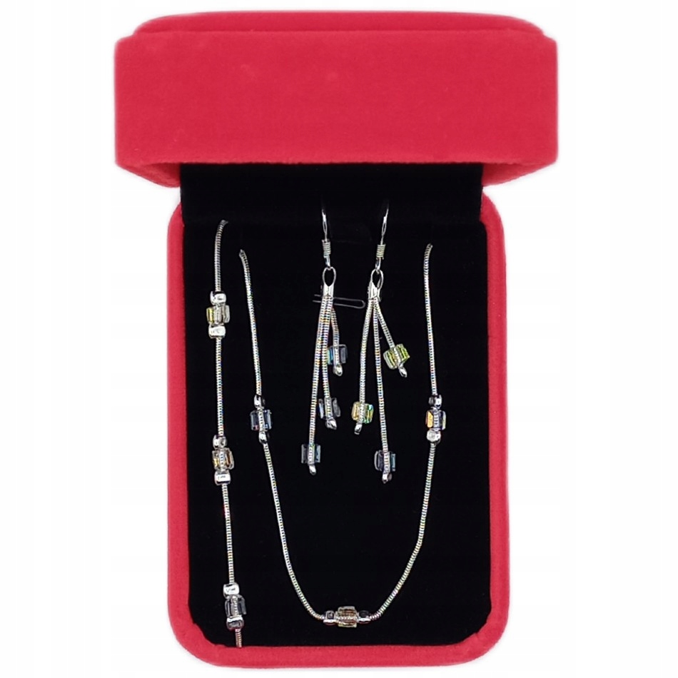 Zawartość kompletu:Bransoletka, Kolczyki, Łańcuszek