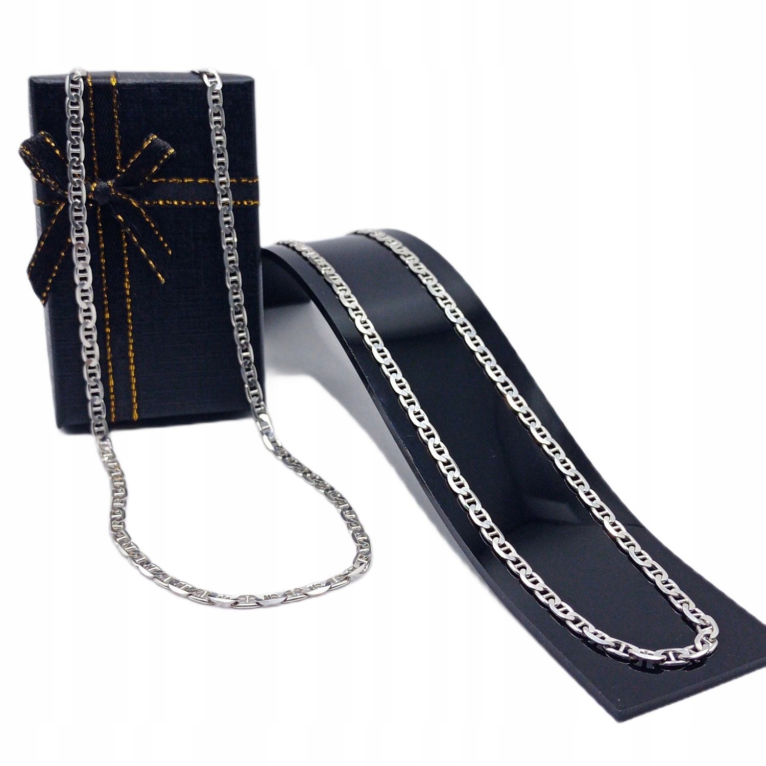 Produkt jest zapakowany w eleganckie pudełko, idealne na prezent. Metka zawiera jedynie informację o wadze łańcuszka, bez ceny, co umożliwia wręczenie upominku bez konieczności usuwania metki.